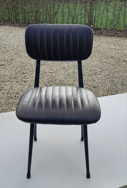 4x Midcentury eetkamerstoelen walnoot Skai leer zwart