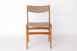 6x Deense eetkamerstoelen van massief teakhout en beige bekleding