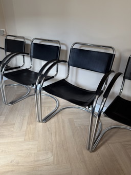 4 Mooie Leren Harvink Stoelen met Stalen Frame