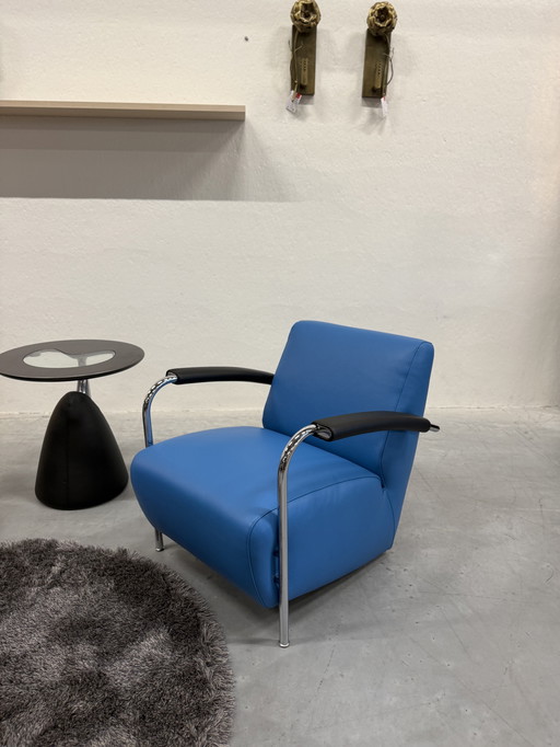 Leolux Scylla fauteuil Blauw zwart leerLeolux Scylla fauteuil Blauw zwart leer