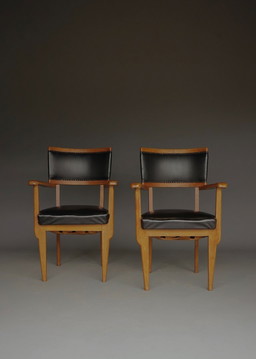 Paar fauteuils, jaren 1940, Hout, StofPaar fauteuils, jaren 1940, Hout, Stof