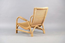 Nederlandse rotan en eiken lounge / fauteuil uit 1950Nederlandse rotan en eiken lounge / fauteuil uit 1950