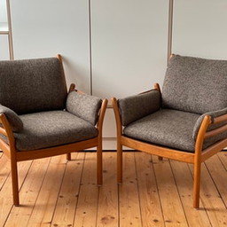 Zeldzaam paar Deense fauteuils, Mod. 451 door Illum Wikkelsø 1960.