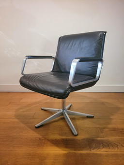 Black Leather Chrome Armchair 80'