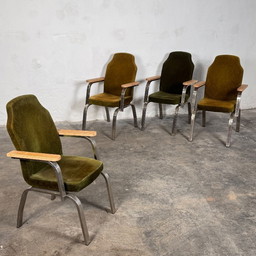 Brutalist Green Oak Armchairs set of 6, 1960s