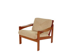 Paar Deense fauteuils van teak, stof en leer, model N°4 Capella Illum Wikkelsø voor Niels Eilersen 1960.