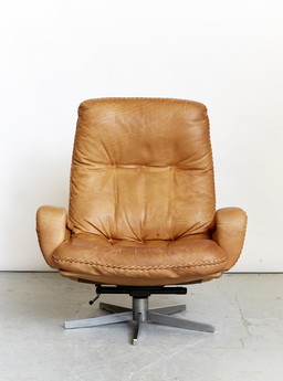 Leren loungestoel met voetenbank - Model King Chair & Pouf