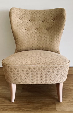 1970 Deense lounge stoel, laag, meubilair velours, essenhouten poten