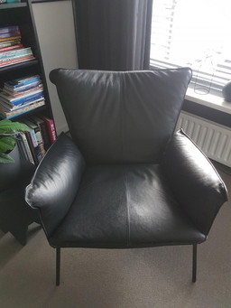 Rolf Benz fauteuil 6000 serie zwart leer.