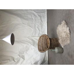 Fauteuil van rotan en boucléFauteuil van rotan en bouclé