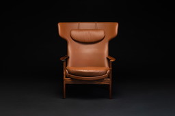 Cognac Leer & Palissander Wingback Loungestoel Door Ib Kofod Larsen Voor Fröscher, 1970S