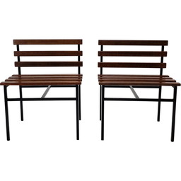 Paar vintage fauteuils in teakhout, Italië 1960