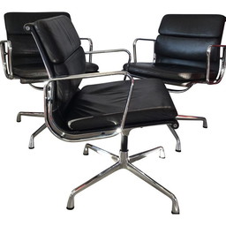 Bruine leren vintage Soft pad fauteuil van EamesBruine leren vintage Soft pad fauteuil van Eames