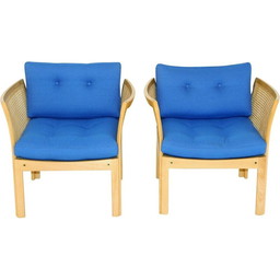 Paar vintage beuken en rotan fauteuils van Illum Wikkelso, 1980