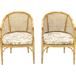Paar vintage bamboe rieten fauteuils 1960Paar vintage bamboe rieten fauteuils 1960
