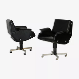 2x Draaibare Fauteuils, Kunstleer en Staal, Italië, Circa 1960