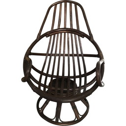 Vintage rotan draaifauteuil met kussenVintage rotan draaifauteuil met kussen