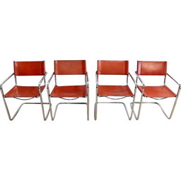 Set van 4 vintage leren en verchroomde metalen fauteuils van Matteo Grassi, 1960