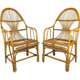 Paar grote vintage bamboe rotan fauteuils 1960