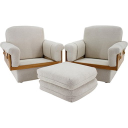 Paar vintage fauteuils in hout en Boucle stof, Tsjecho-Slowakije 1970