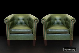 Gecapitonneerde Chesterfield Clubfauteuils in Dik Zadelleer/RundleerGecapitonneerde Chesterfield Clubfauteuils in Dik Zadelleer/Rundleer
