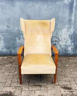 Een comfortabele oorfauteuil. Volledig gerestaureerd met een Camel Rib.