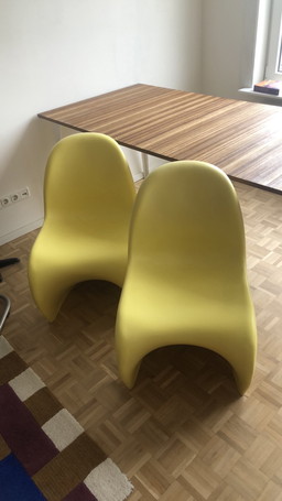 6x Dutchbone eetkamerstoelen waarvan 2 zwart velour zonder leuning en 4 oker geel met leuning