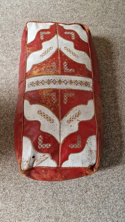 Oriëntaalse rood/wit leren poef. Oriëntaalse rood/wit leren poef.