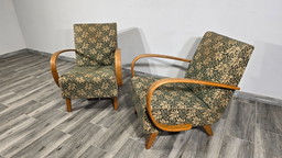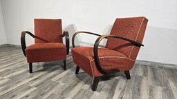 Indrukwekkend paar Art Deco leren fauteuils. 1940s.