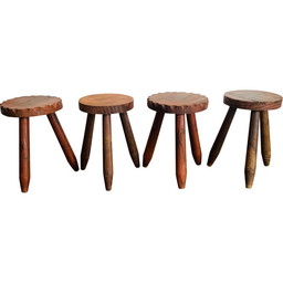 Set van vier Franse rustieke krukjesSet van vier Franse rustieke krukjes