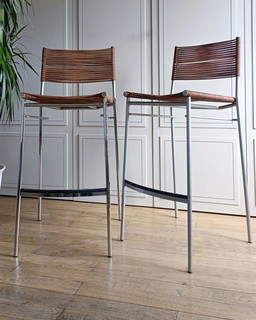 Vintage leren barkruk van Börje Johanson, Zweden, jaren 1970, set van 4