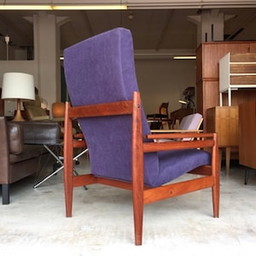 2x Ib Kofod-Larsen voor Selig, Mid Century Deense Teakhouten Loungestoel / Fauteuil, nieuwe kussens, nieuwe hoes