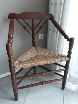 Antieke Franse houten leunstoel met rieten zitting, 1890S