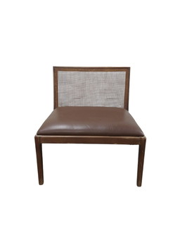 Manou rotan fauteuil met leren zitting, 1960