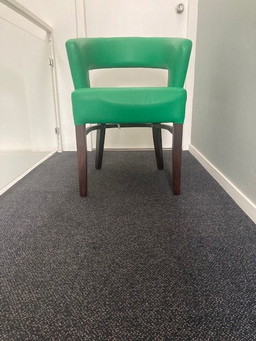 2x Vintage Eettafel Stoel, Elegant Taps Toelopende Poten, Turkoois Skai Bekleding