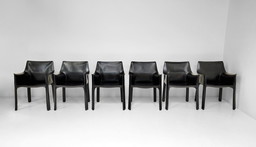 4 x Calligaris zwart met wit leer. Eetkamerstoelen 2008