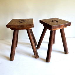 Vintage set Bram Sprij stoelen eiken & leer brutalist stijl