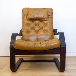 Peter Opsvik - Stokke - Slinger - Ergonomisch gevormde schommelstoel - Zwart lederen bekleding en houten frame