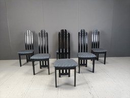 Set van 6 postmoderne eetkamerstoelen, 1970S