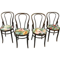 Set van 4 vintage fluwelen Thonet No. 18 eetkamerstoelen in donkerbruin
