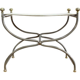 Curule vintage kruk in wit leer en staal