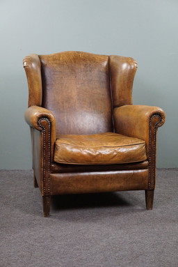 Comfortabele schapenleren oorfauteuilComfortabele schapenleren oorfauteuil