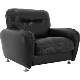 Vintage zwarte leren fauteuil, Italië 1970