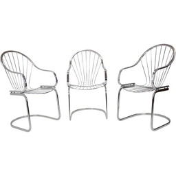 Set van 3 vintage chromen stoelen van Gastone Rinaldi, Italië 1960