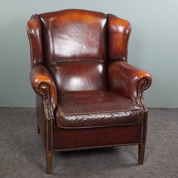 Warm bruine schapenleren oorfauteuilWarm bruine schapenleren oorfauteuil