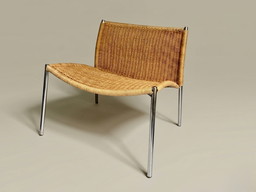 Vintage rotan lounge stoel met chromen poten Vintage rotan lounge stoel met chromen poten