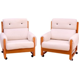 Paar vintage fauteuils in beukenhout en stof, 1970