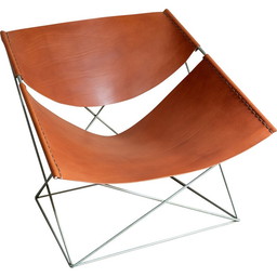 Vintage "Butterfly" fauteuil in metaal en havana leer van Pierre Paulin, 1965