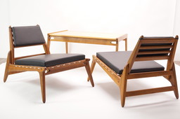 Paar mid century Deense teakhouten fauteuils van Fred Lowen