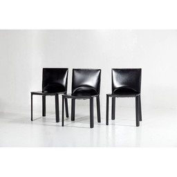 Vintage set van 3 zwart leren eetkamerstoelen van De Couro,1980